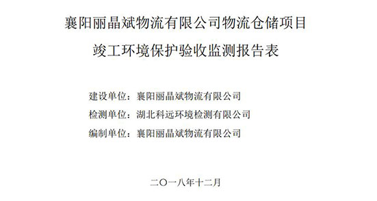 襄陽麗晶斌物流有限公司 襄陽麗晶斌物流有限公司物流倉儲項(xiàng)目 竣工環(huán)境保護(hù)驗(yàn)收公示 根據(jù)《建設(shè)項(xiàng)目環(huán)境保護(hù)管理?xiàng)l例》(國務(wù)院令第682號)和《建設(shè)項(xiàng)目竣工環(huán)境保護(hù)驗(yàn)收暫行辦法》的有關(guān)規(guī)...